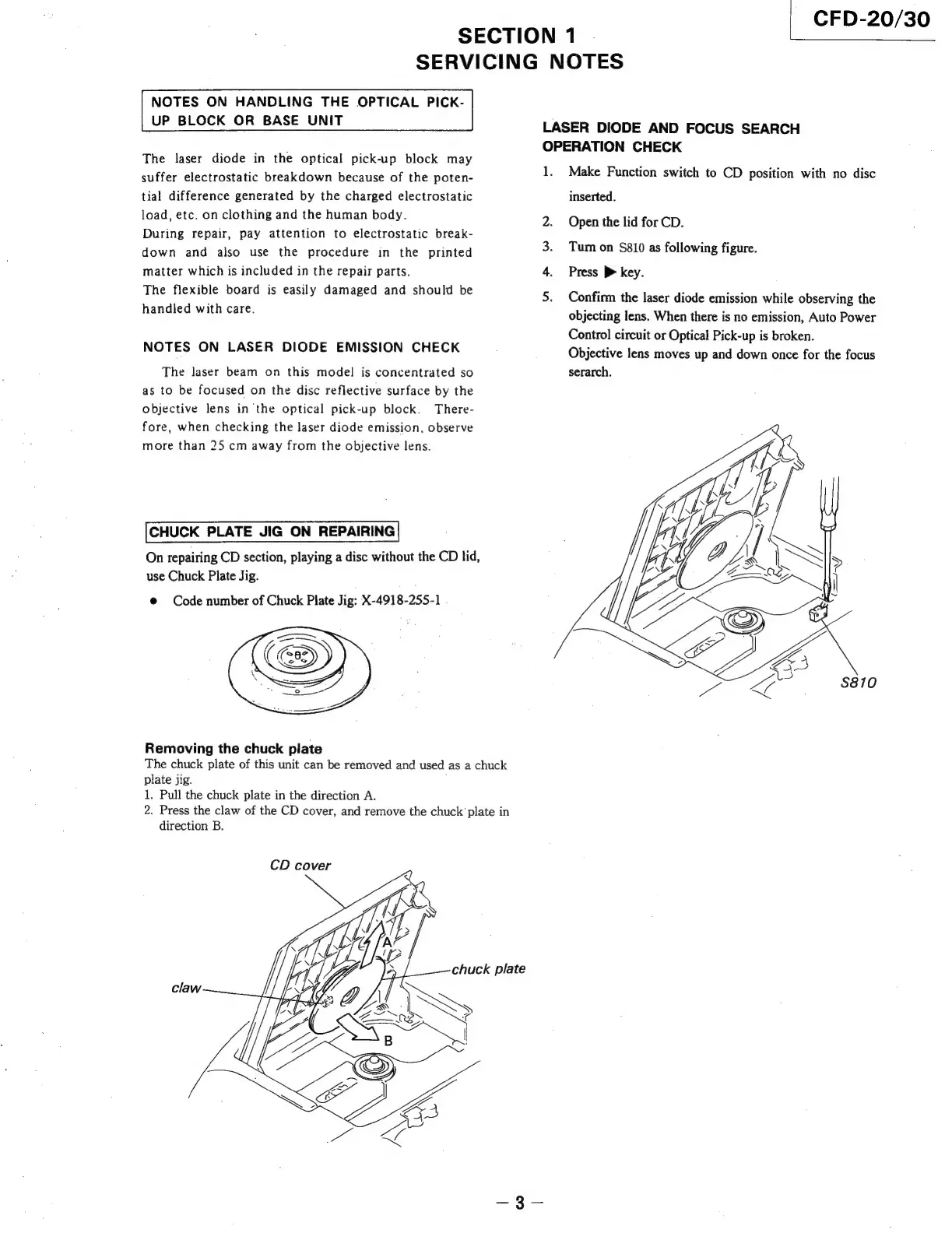 Sony CFD-30 - Chuck Plate Jig on Repairing