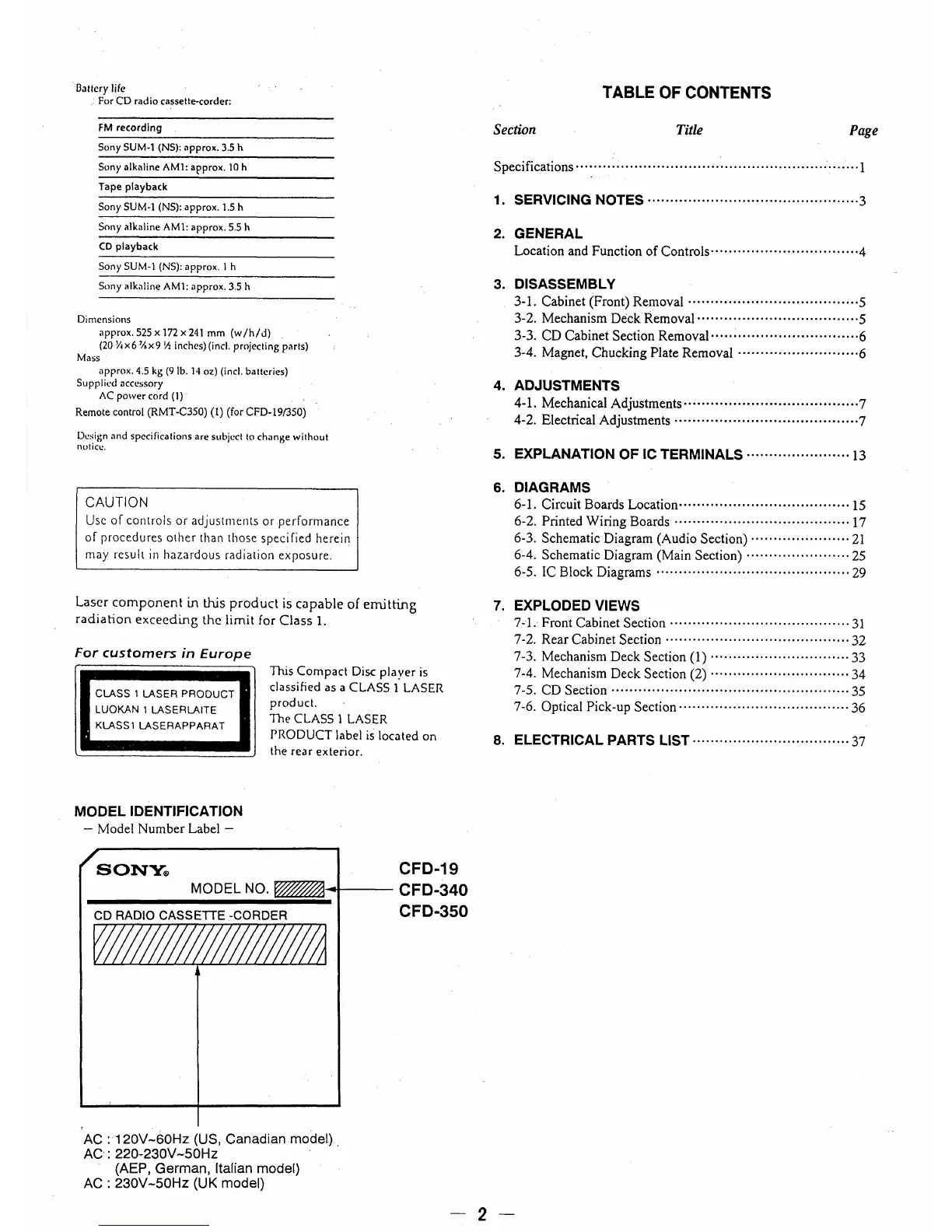 Sony CFD-340 - MODEL IDENTIFICATION; Model Number Label Identification