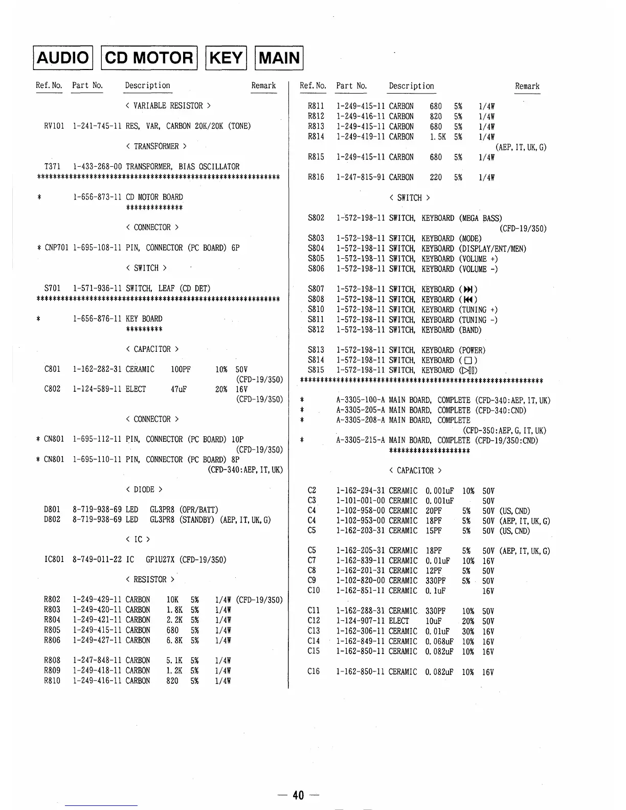 Sony CFD-340 - Variable Resistors, Transformers, and Capacitors (Main Board)
