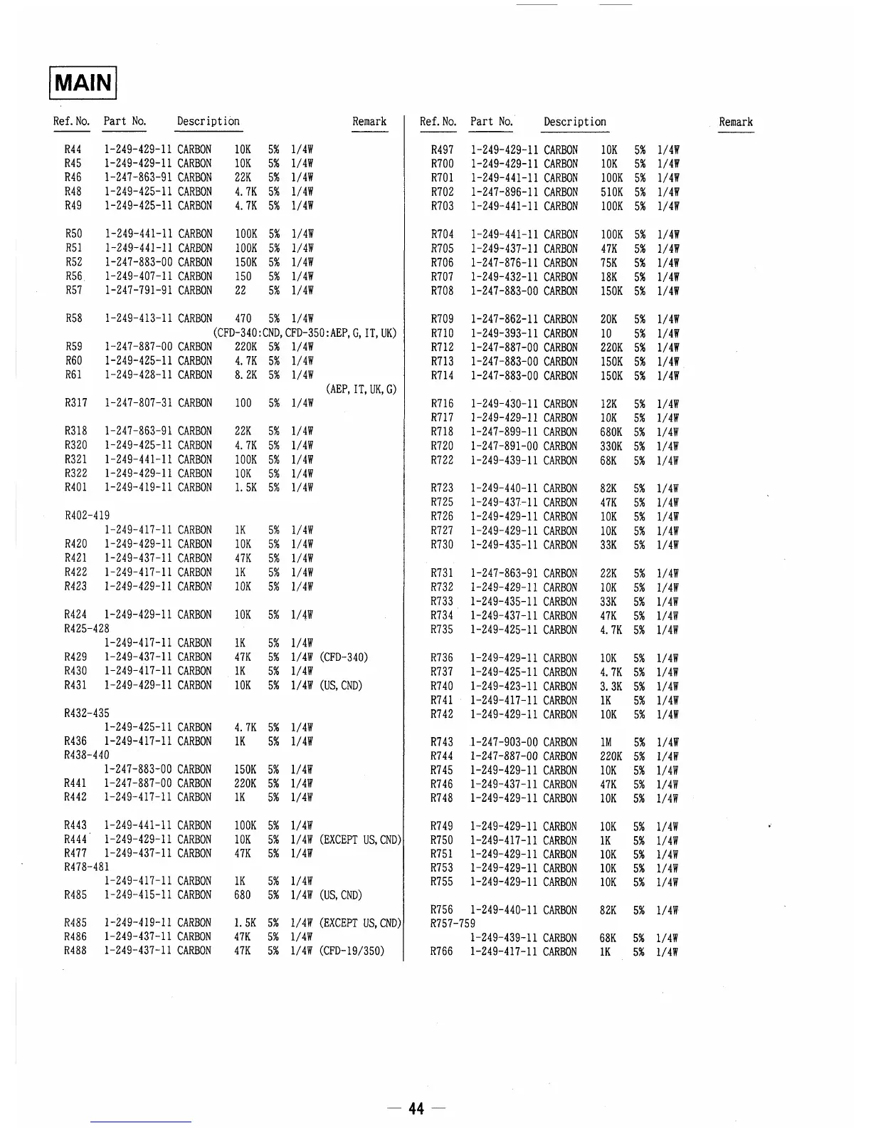 Sony CFD-340 - Resistors (Main Section Continued)