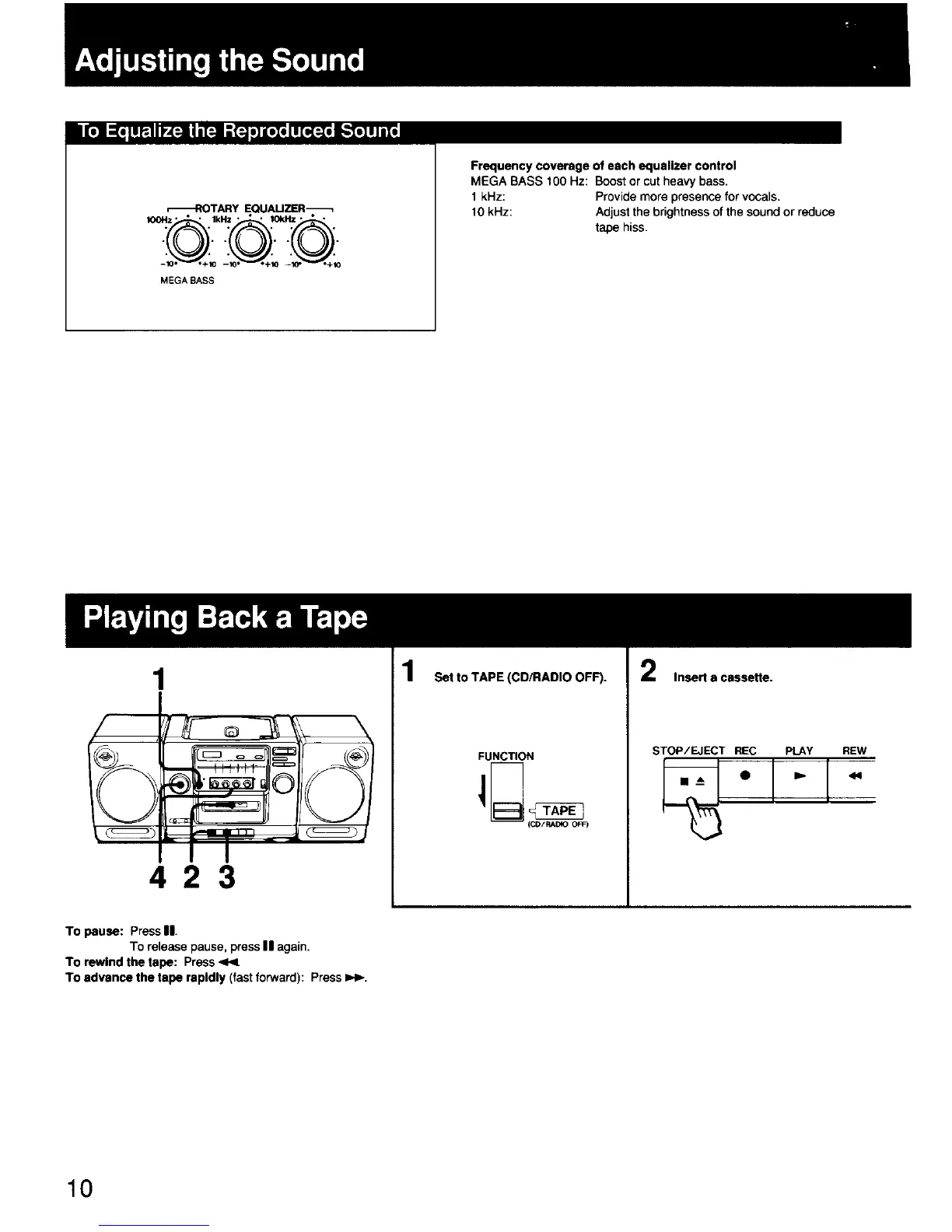 Sony CFD-440 - Adjusting the Sound; Equalizing Reproduced Sound; Playing Back a Tape; Tape Playback Operations