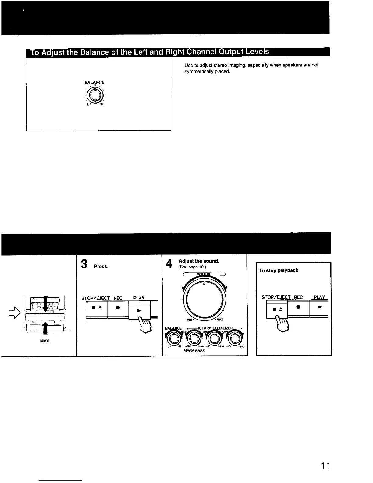 Sony CFD-440 - Adjusting Audio Balance; Left and Right Channel Balance
