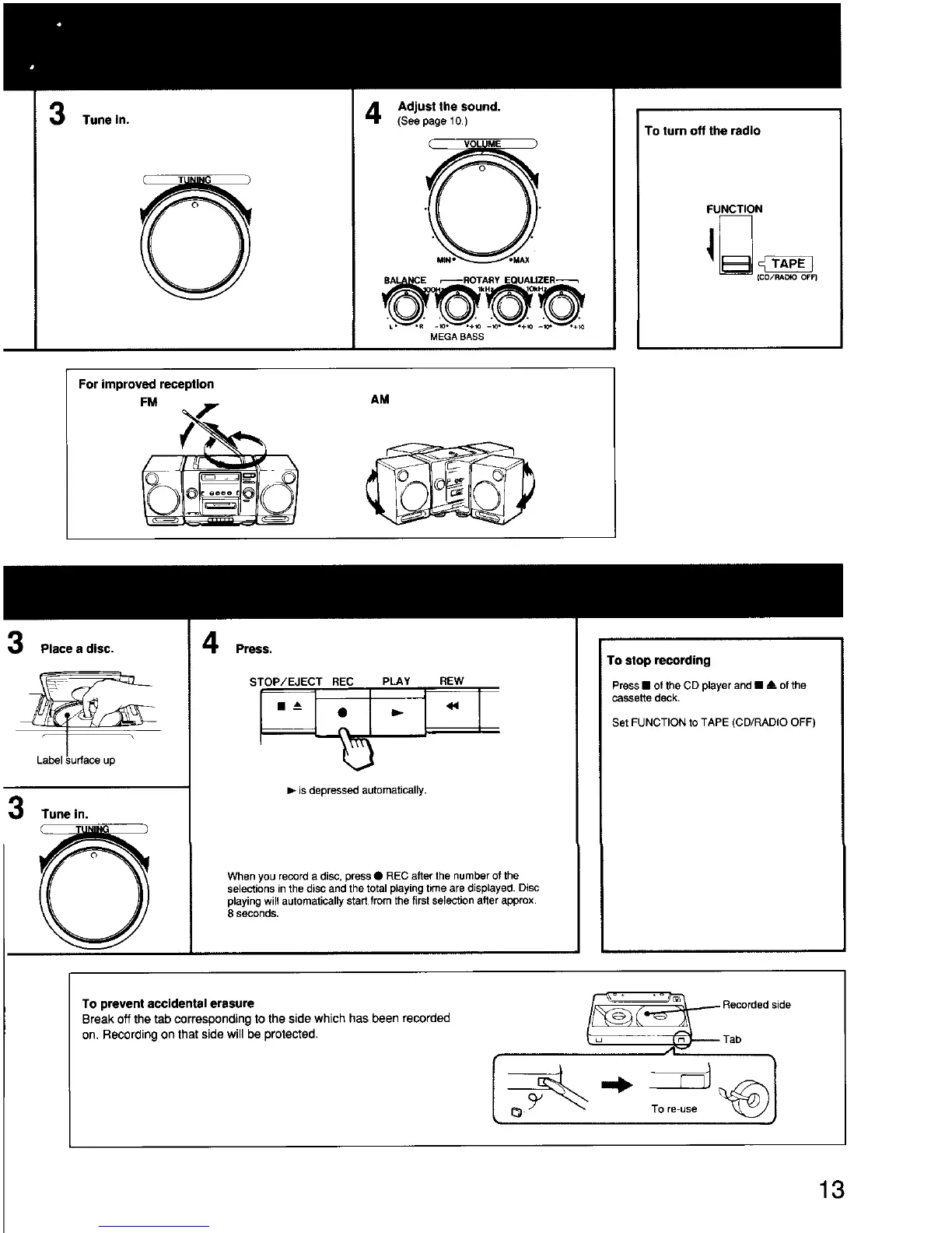 Sony CFD-440 - Radio Operations; Tuning and Reception; Recording Protection; Preventing Accidental Erasure