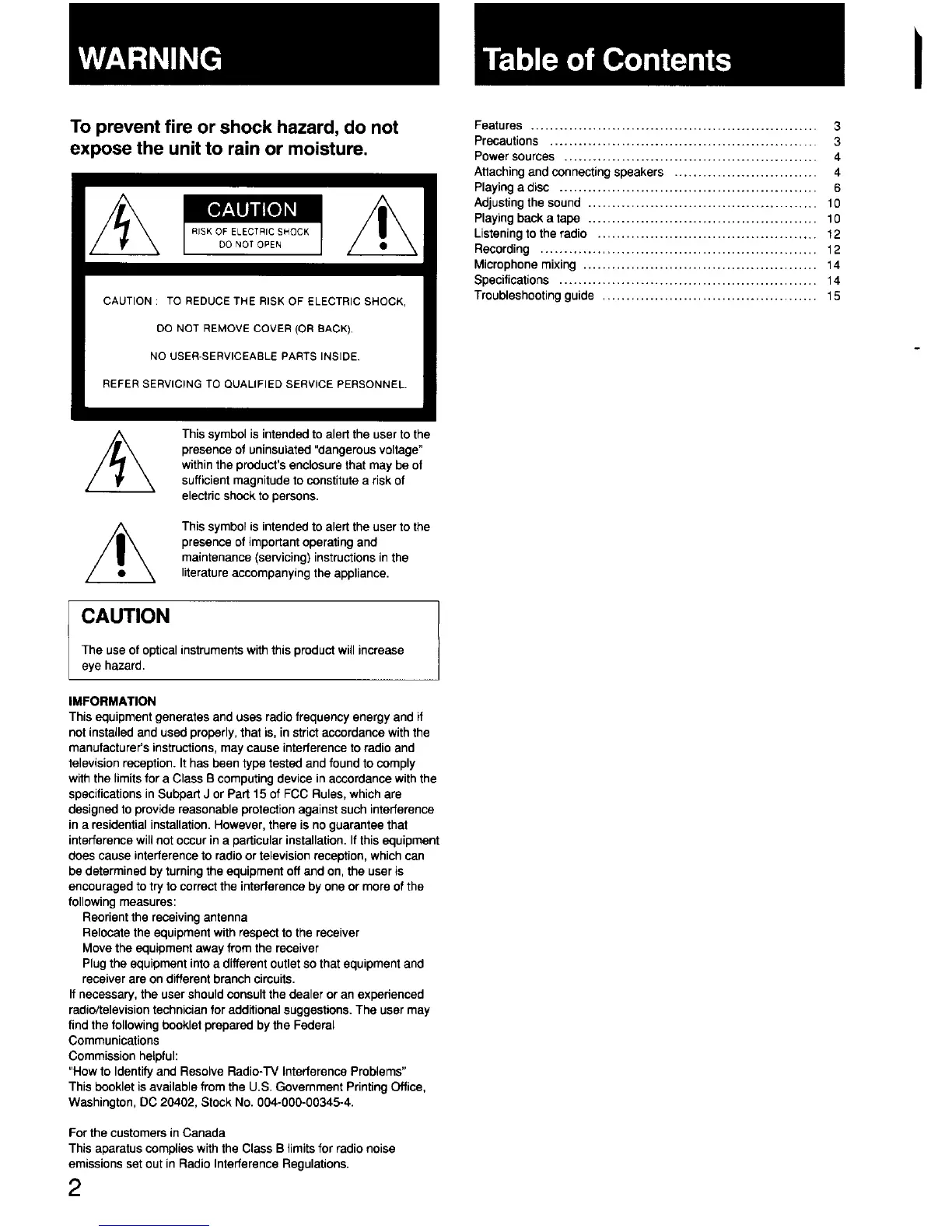 Sony CFD-440 - Safety and Compliance; General Warnings; Radio Frequency Energy Information