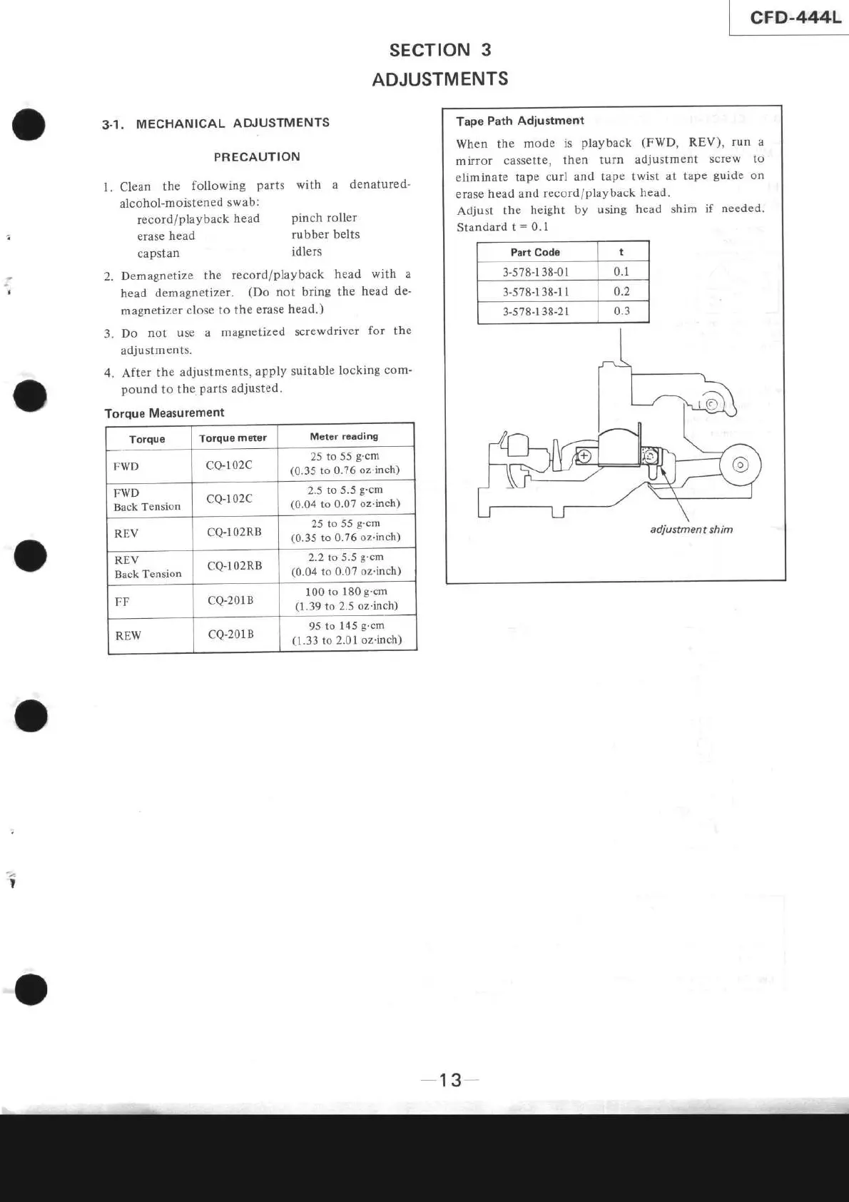 Sony CFD-444L - SECTION 3 ADJUSTMENTS; 3-1. MECHANICAL ADJUSTMENTS
