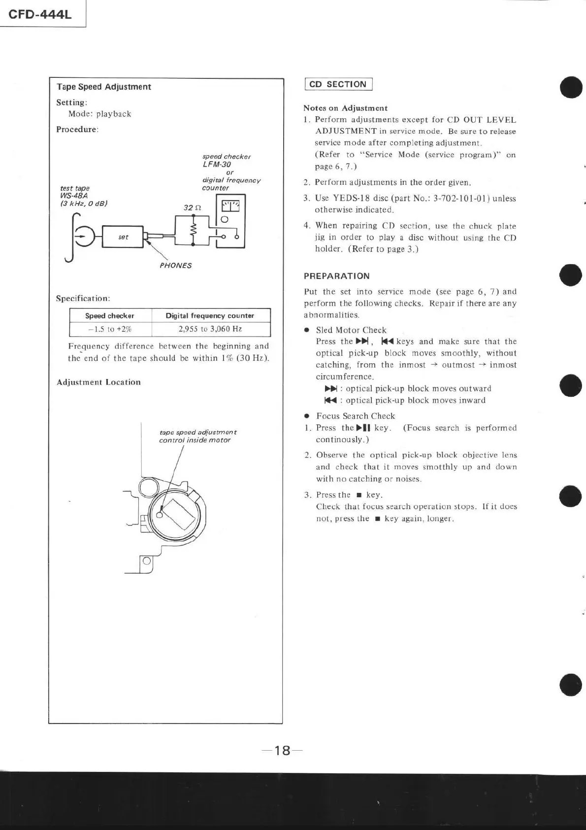 Sony CFD-444L - Tape Speed Adjustment; CD SECTION