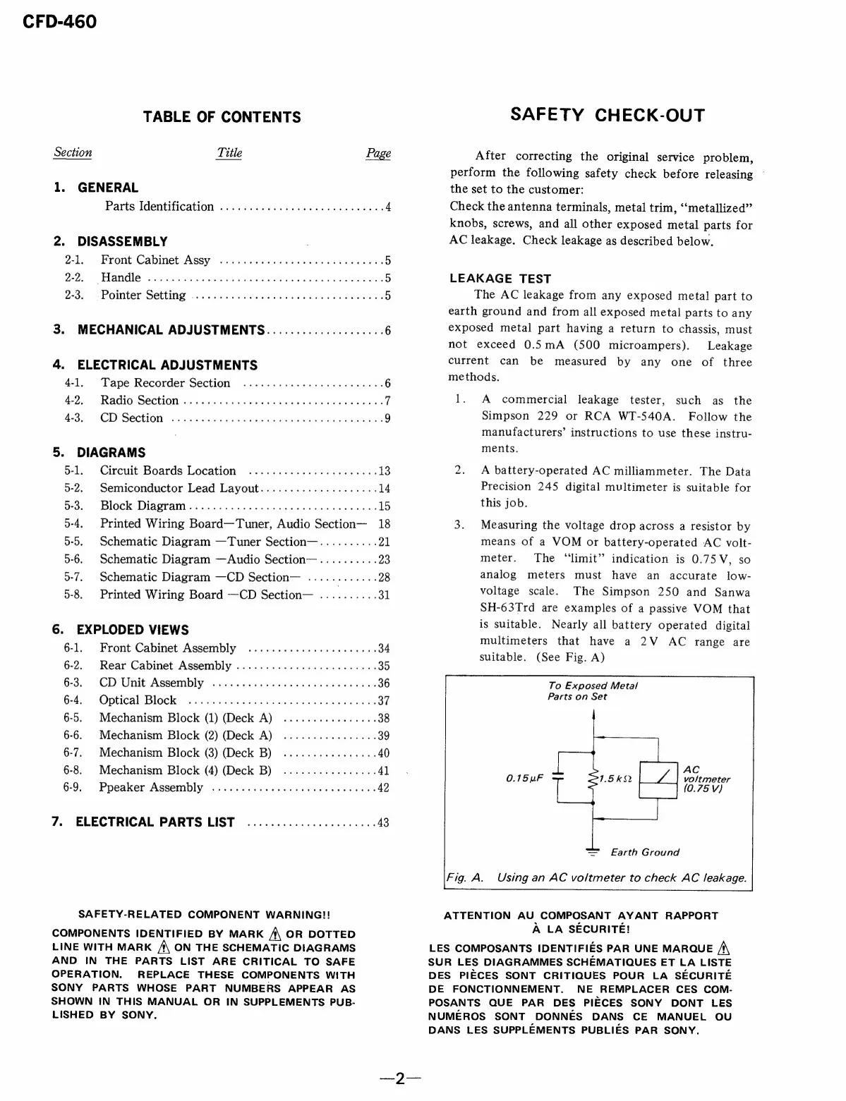 Sony CFD-460 - Table of Contents