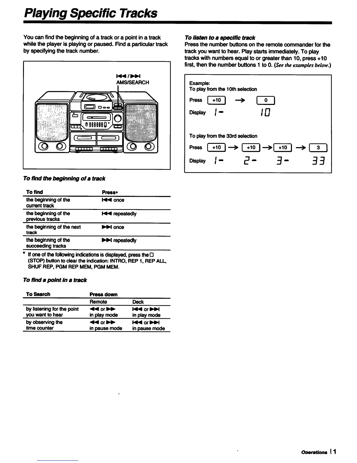 Sony CFD-560 - Playing Specific Tracks; To Find the Beginning of a Track; To Find a Point in a Track; To Listen to a Specific Track
