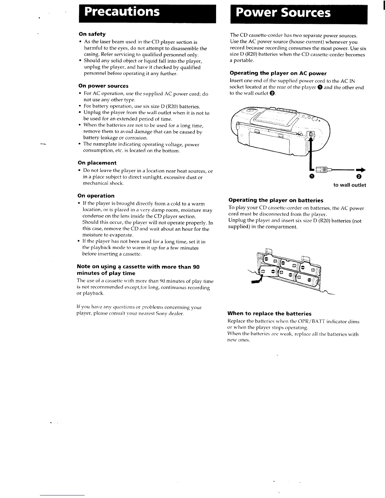 Sony CFD-6 - Precautions; Safety Precautions; Power Source Precautions; Placement Precautions