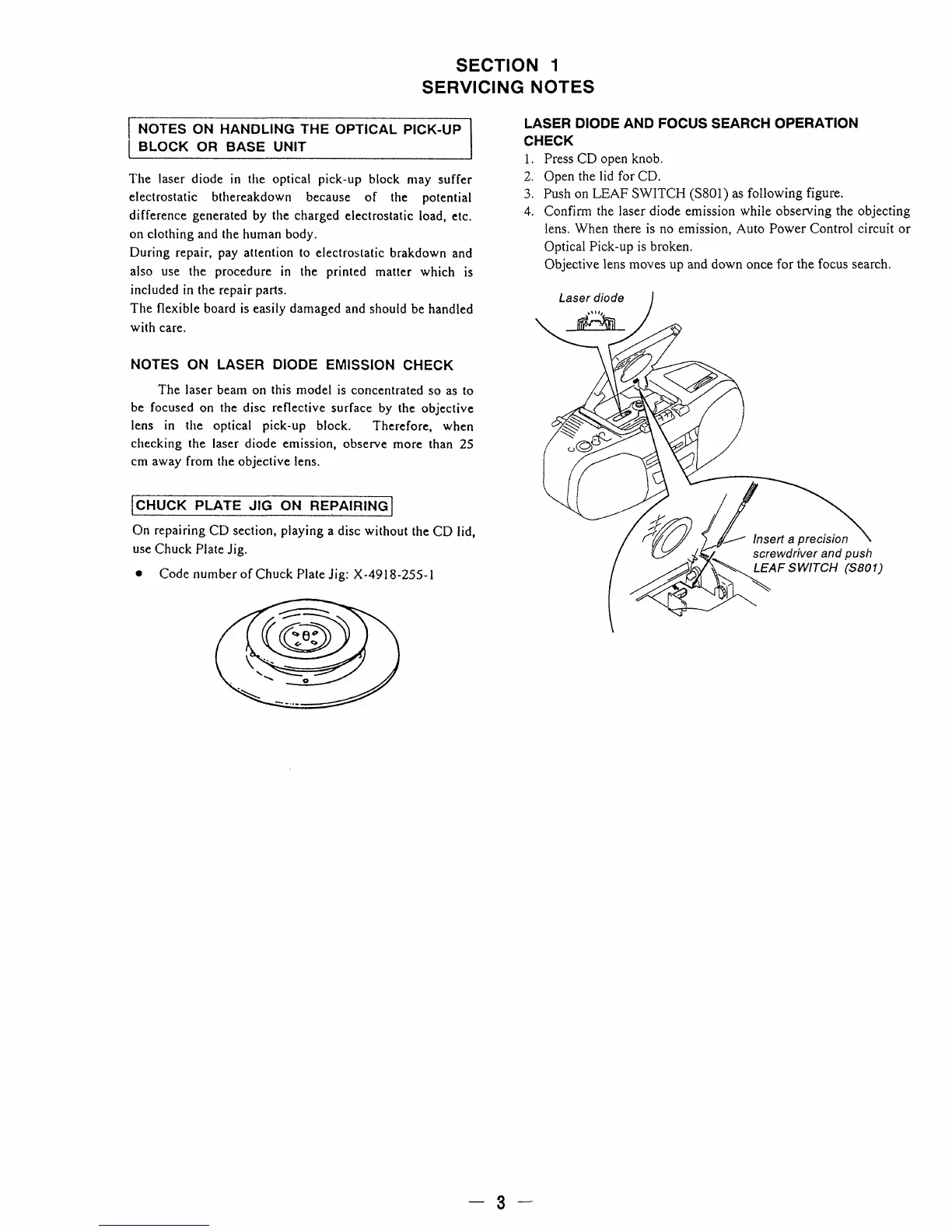 Sony CFD-8 - Handling Optical Pick-up Block; Laser Diode and Focus Search Operation Check