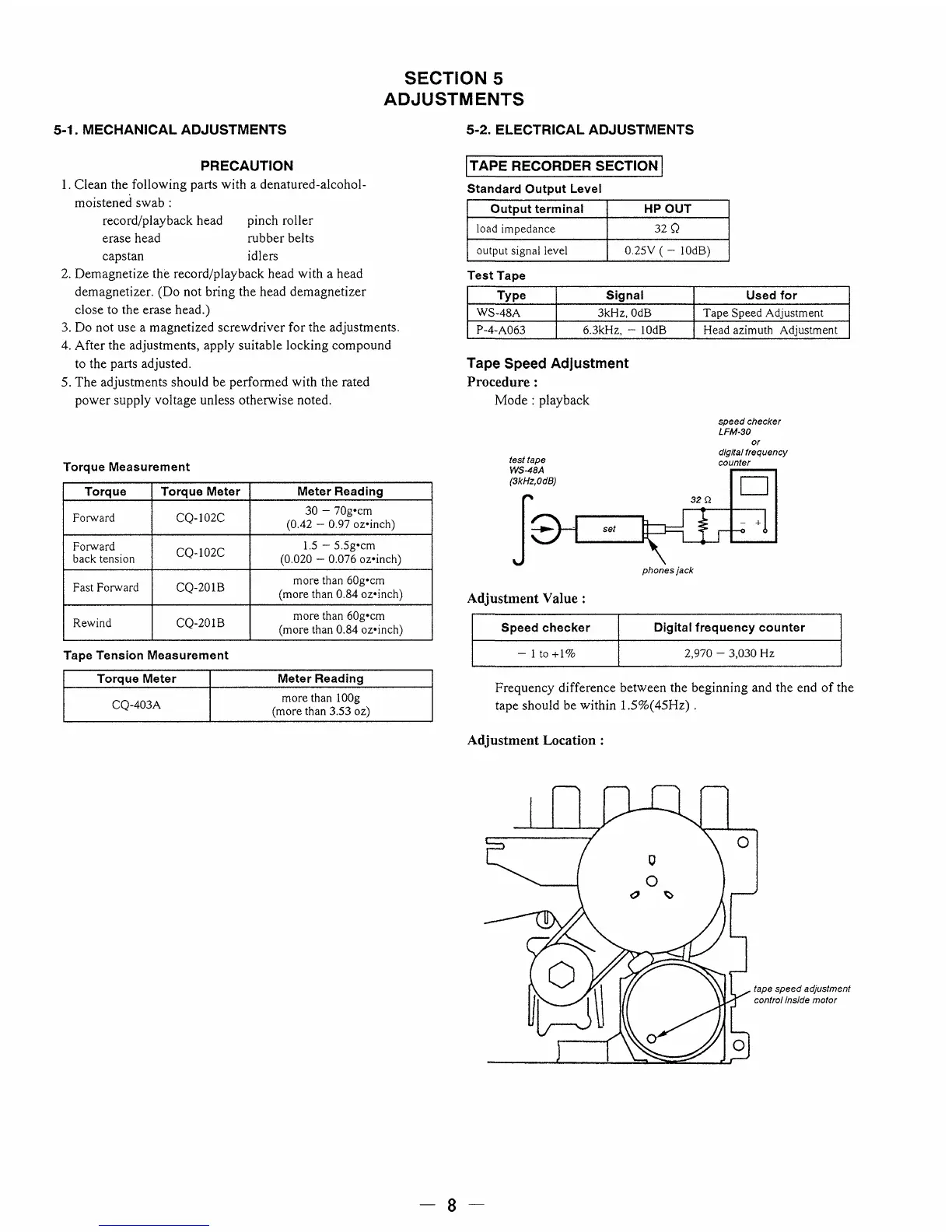 Sony CFD-8 - Adjustments; Mechanical Adjustments; Electrical Adjustments