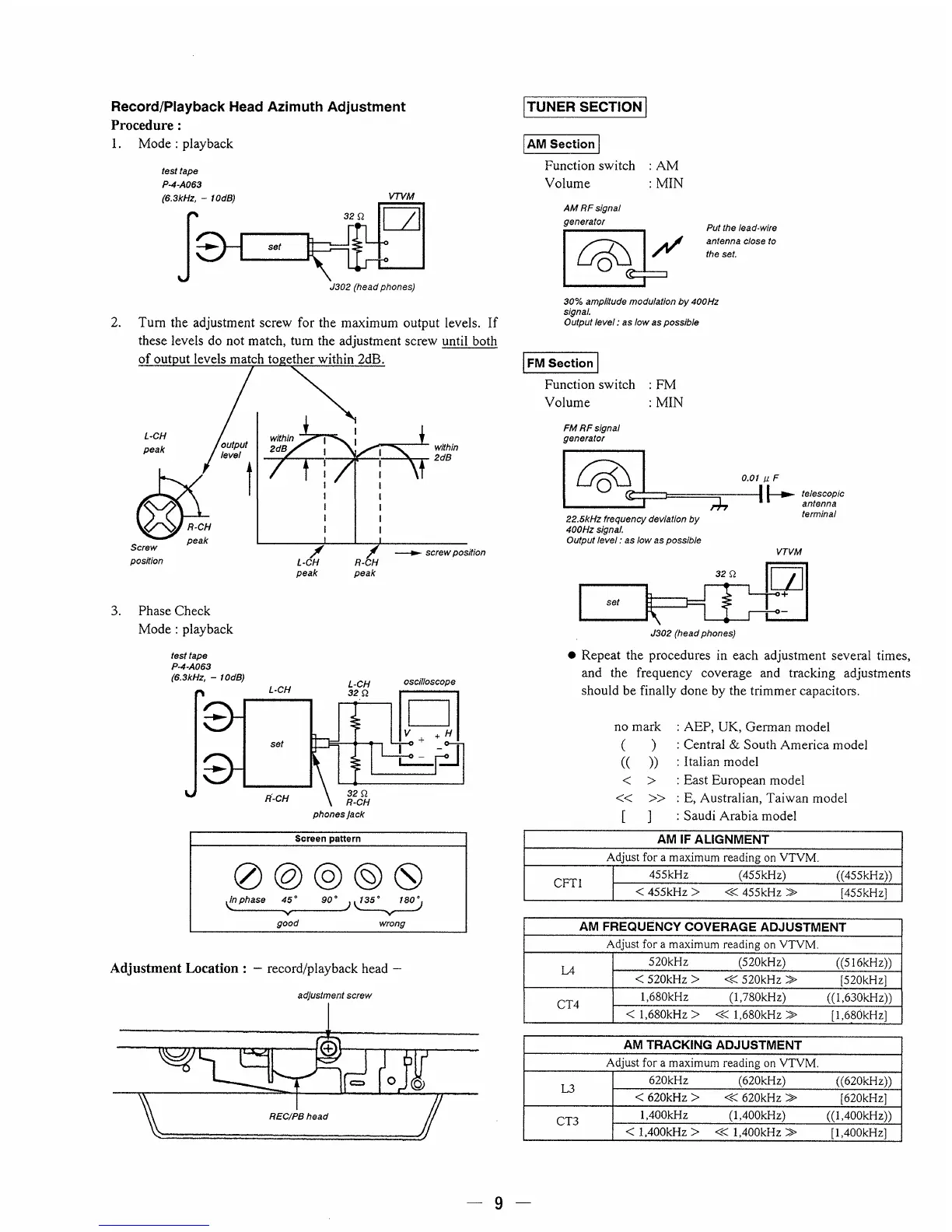 Sony CFD-8 - Record;Playback Head Azimuth Adjustment; Tuner Section Adjustments