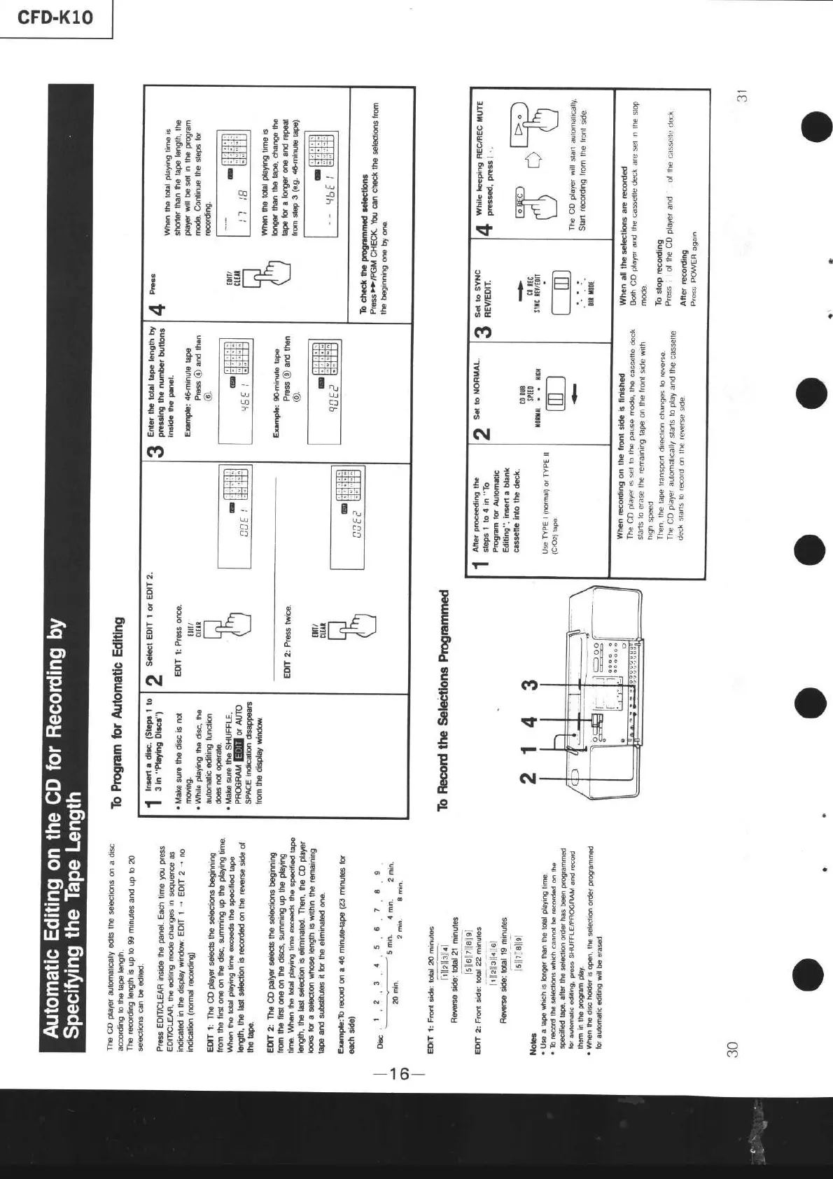Sony CFD-K10 - Automatic Editing on the CD for Recording; Specifying the Tape Length; To Program for Automatic Editing; To Record the Selections Programmed