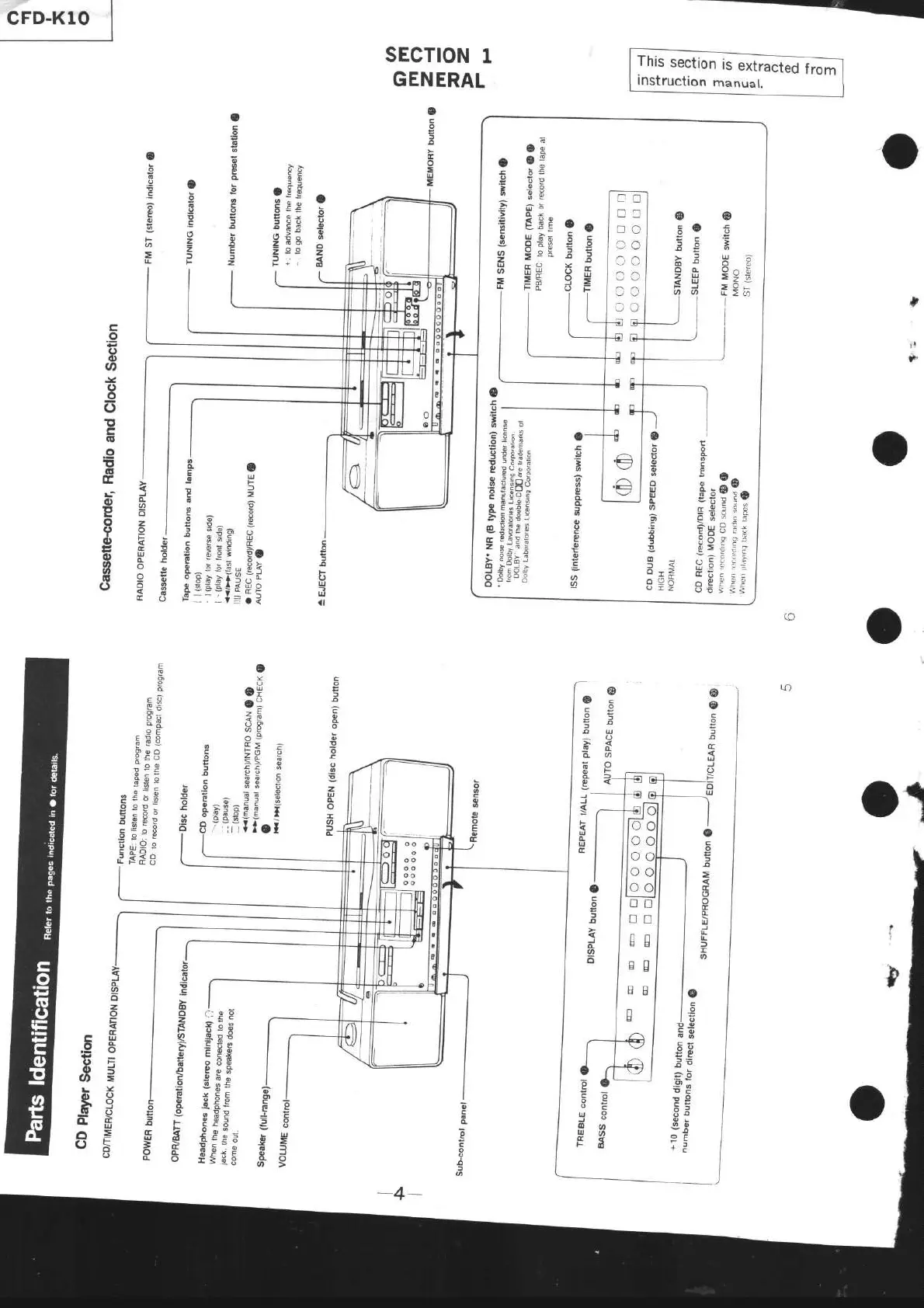 Sony CFD-K10 - General; Parts Identification; CD Player Section