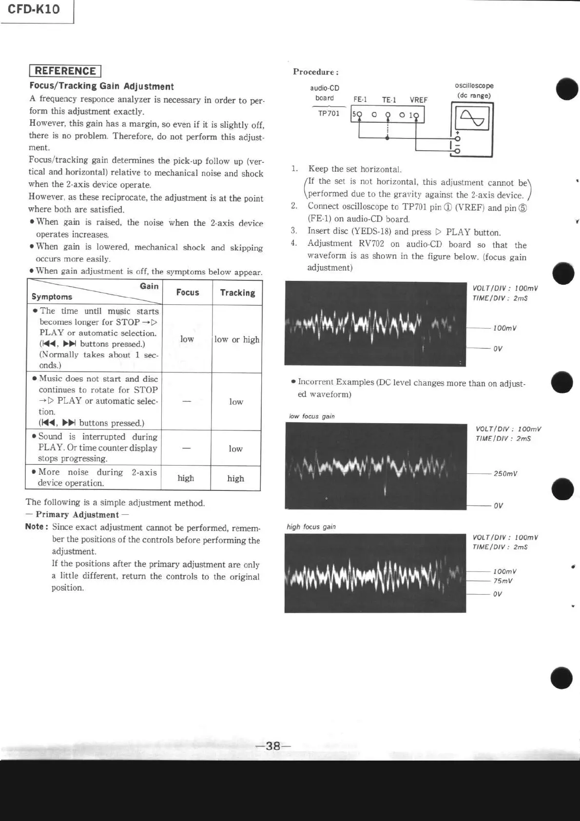 Sony CFD-K10 - Focus;Tracking Gain Adjustment; Primary Adjustment