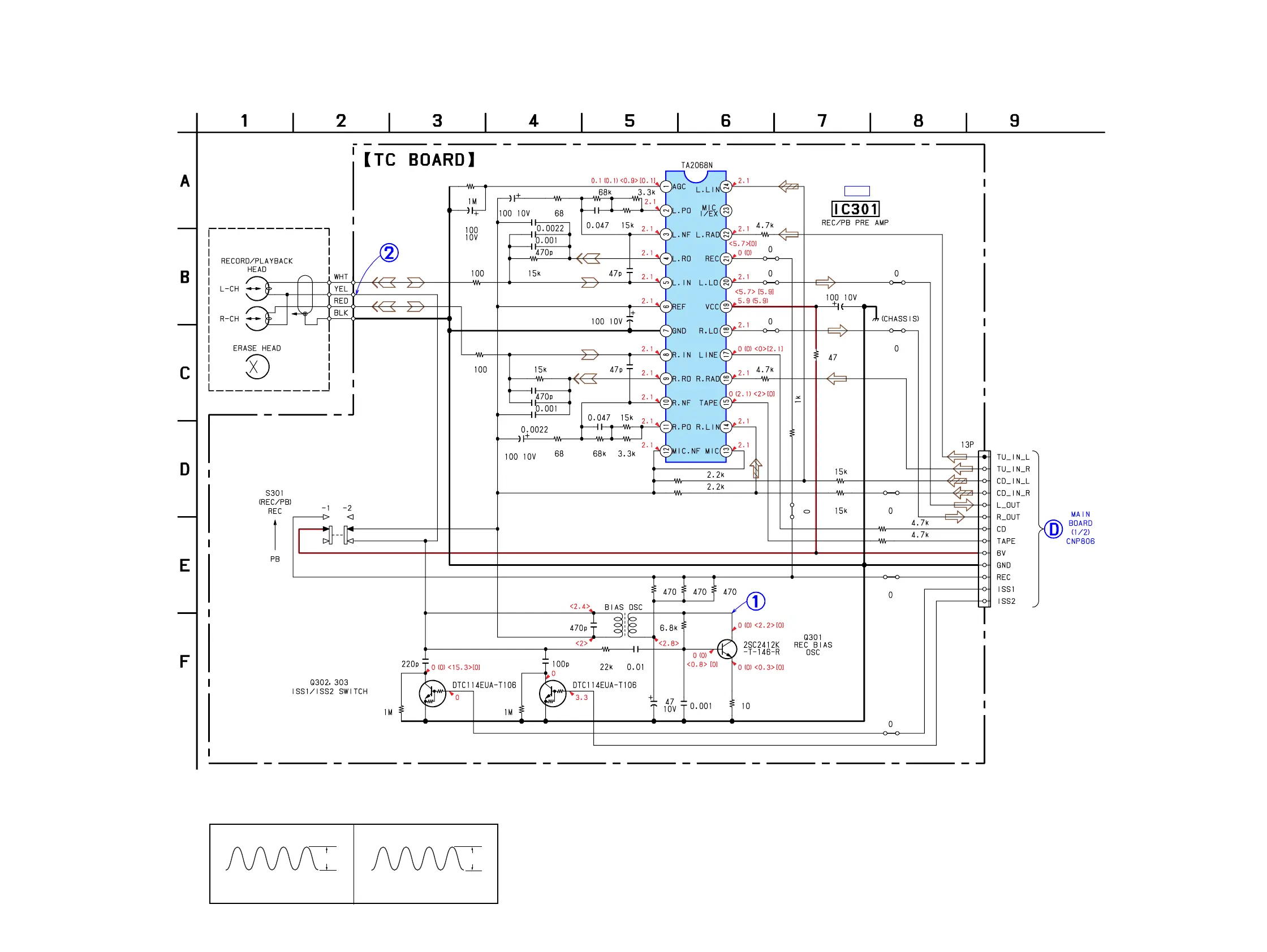 Sony CFD-S100L - Schematic Diagram: TC Section; Tape Pre-Amplifier Circuits; Tape Bias Oscillator and Switching