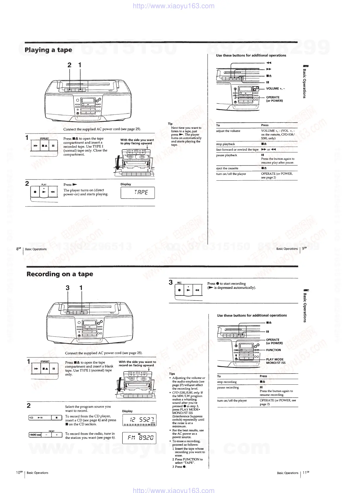 Sony CFD-S38L - Playing a Tape; Recording on a Tape