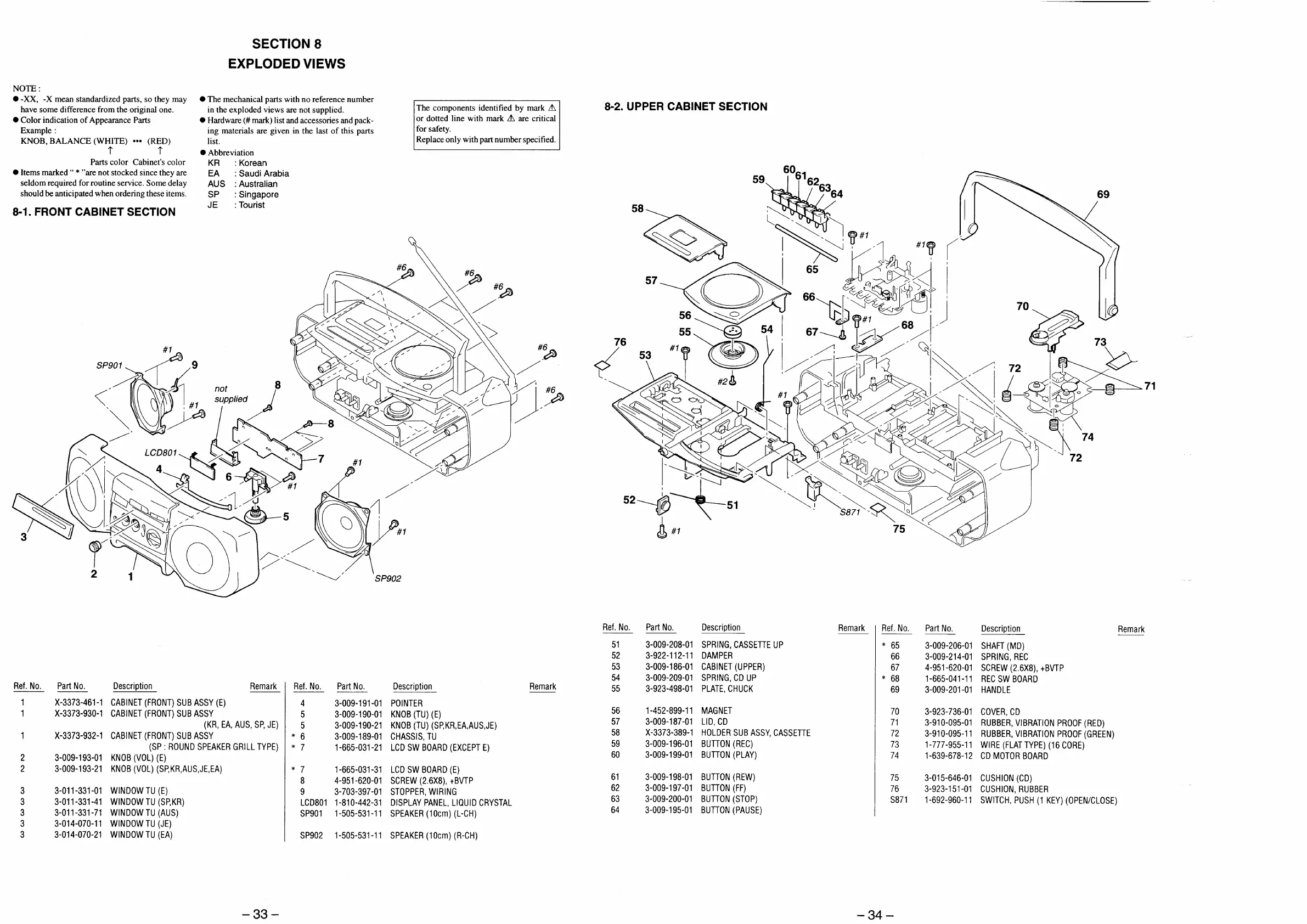 Sony CFD-V10 - Exploded Views; Front Cabinet Section