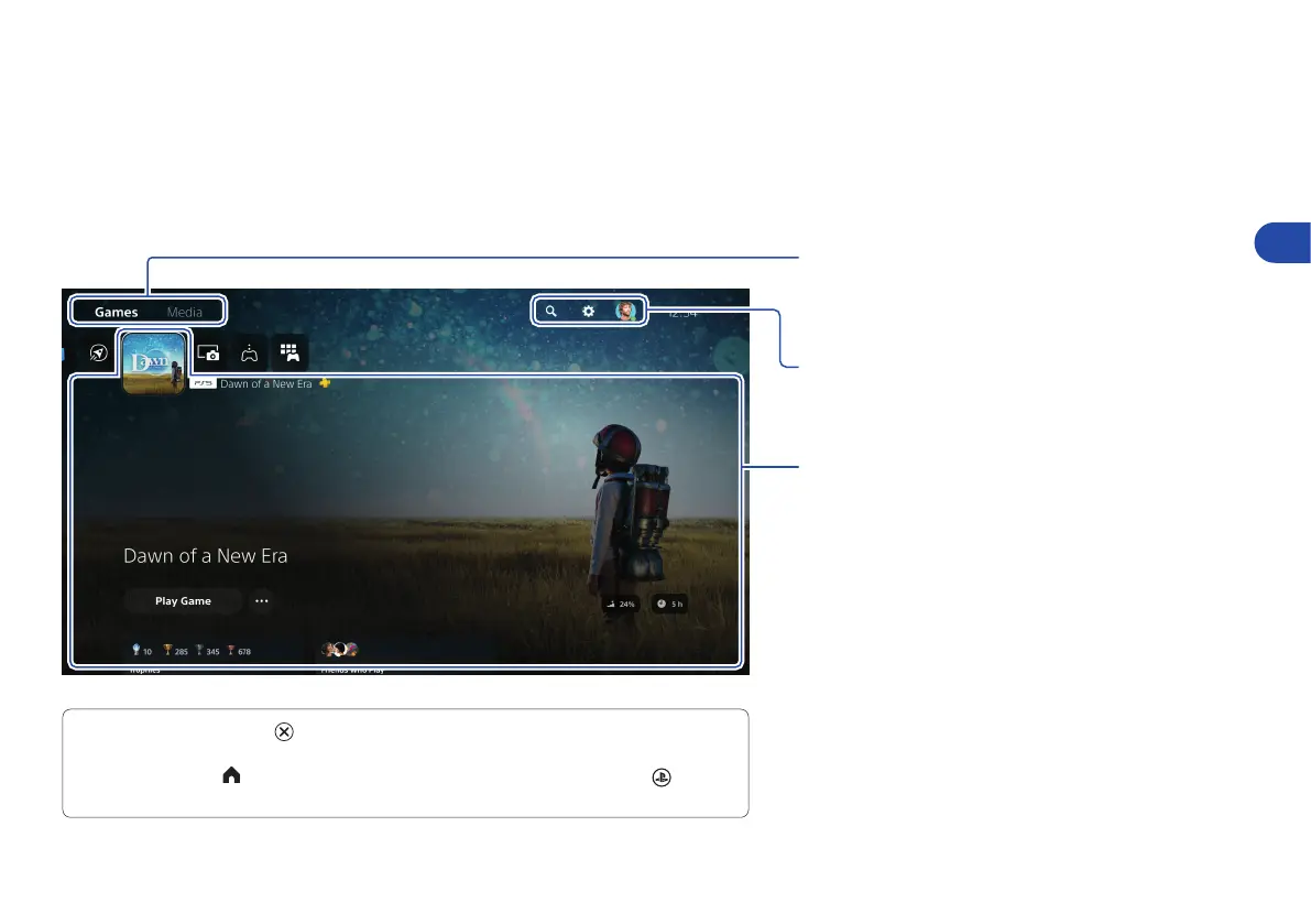 Pe pagina de pornire a jocurilor vei găsi jocurile tale, PlayStation®Store şi alte aplicaţii asociate jocurilor.