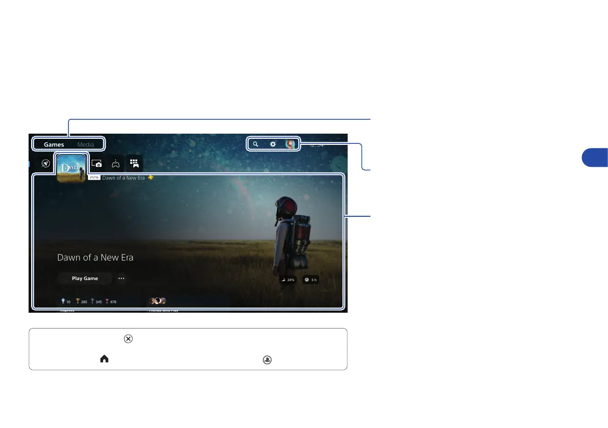 Na početnom ekranu za igre pronaći ćete svoje igre, prodavnicu PlayStation®Store i druge aplikacije povezane sa igrama.