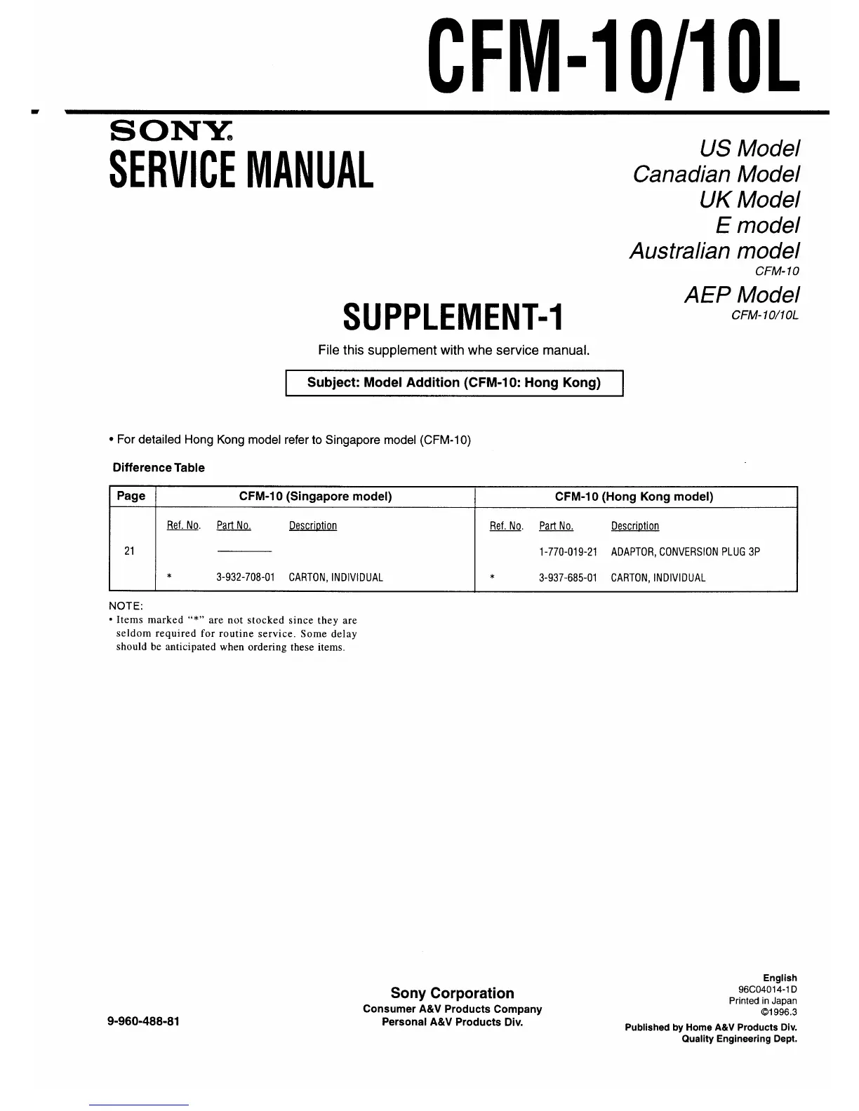 Sony CFM-10 - Supplement-1