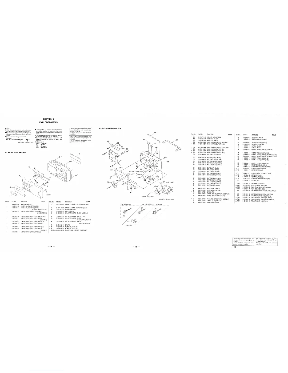 Sony CFM-10 - Exploded Views and Parts Breakdown; Front Panel Section Exploded View; Rear Cabinet Section Exploded View