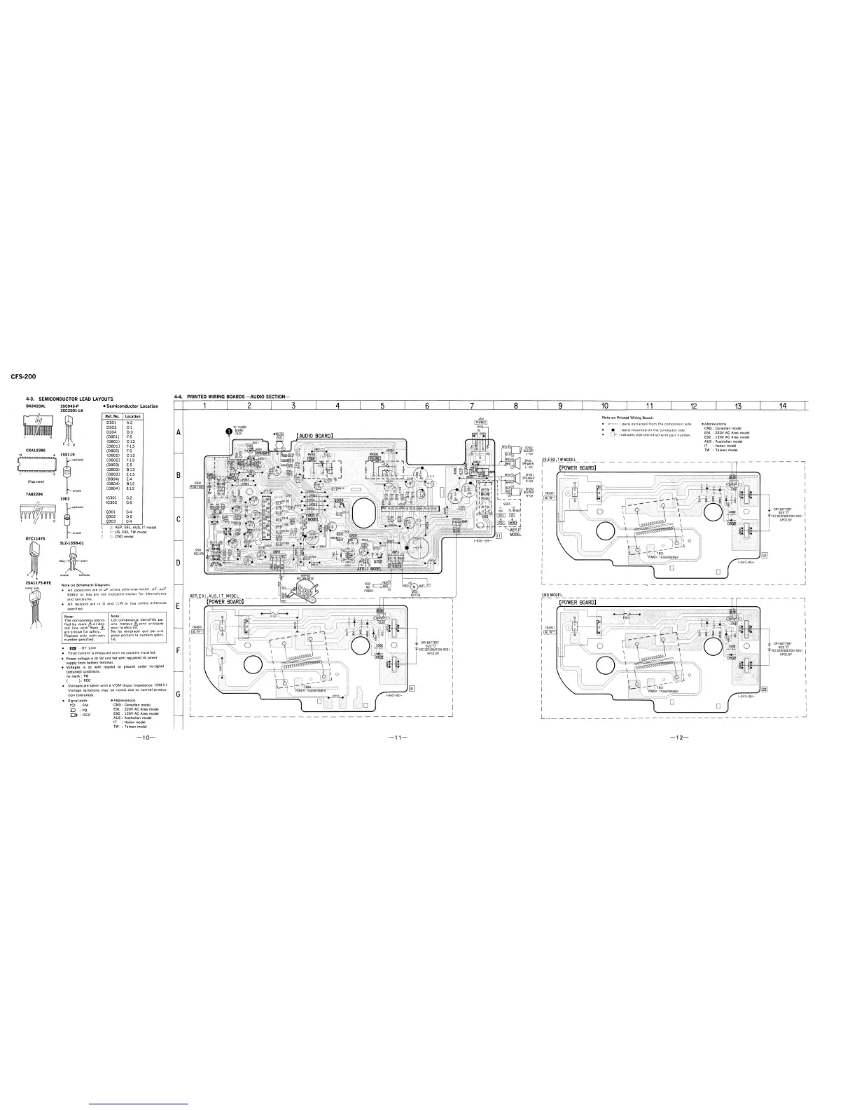 Sony CFS-200 - Semiconductor Lead Layouts; Printed Wiring Boards - Audio Section