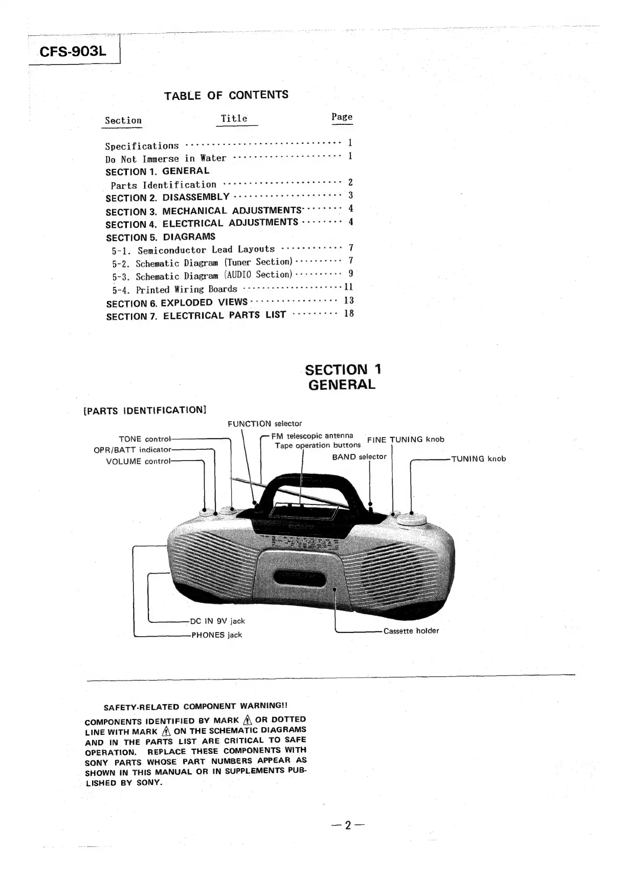 Sony CFS-903L - Parts Identification; Fine Tuning