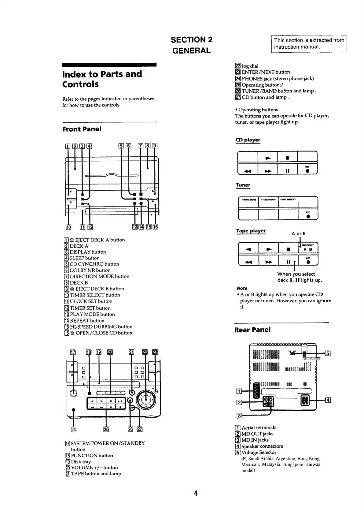 Sony CHC-P11 - GENERAL INFORMATION; Index to Parts and Controls