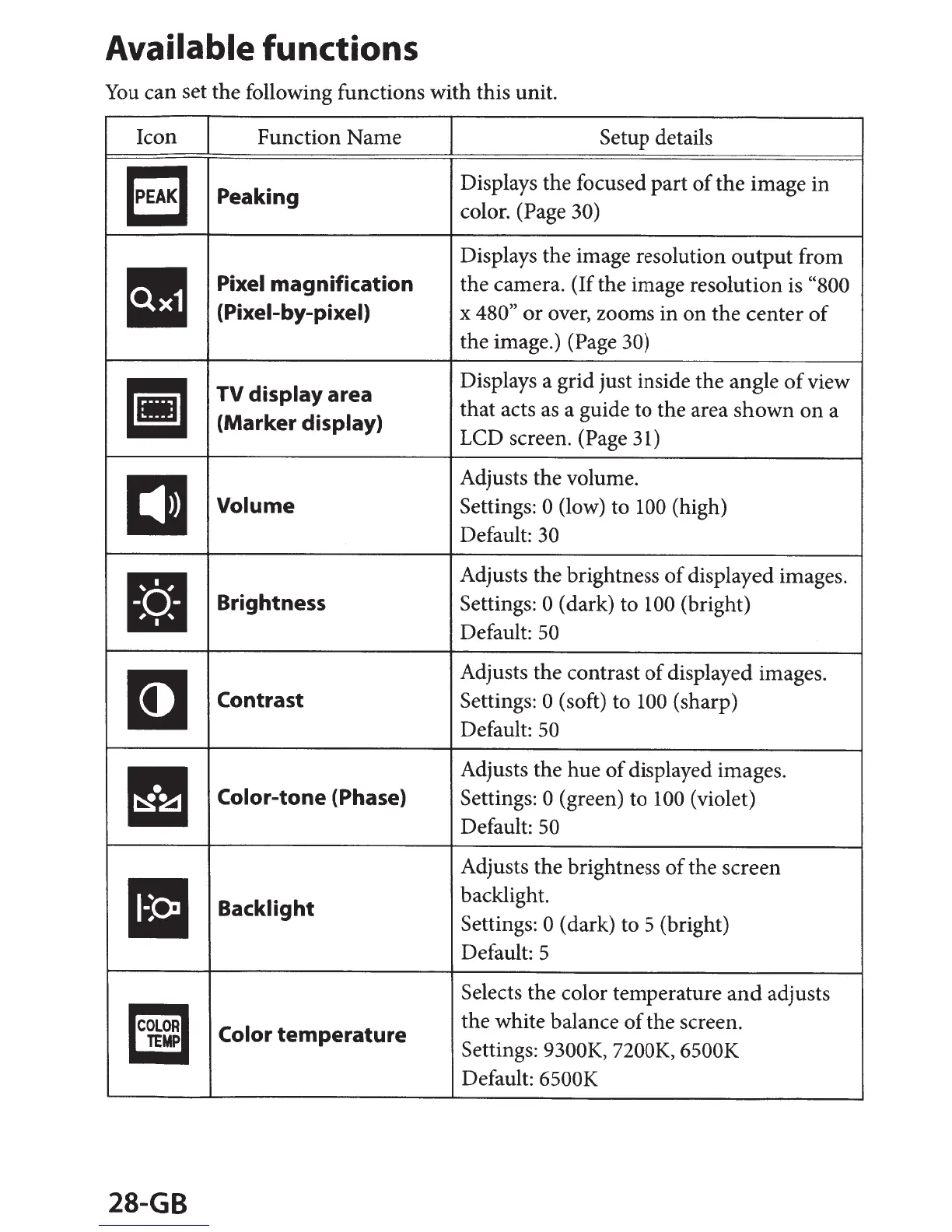 Sony CLM-V55 - Available Functions
