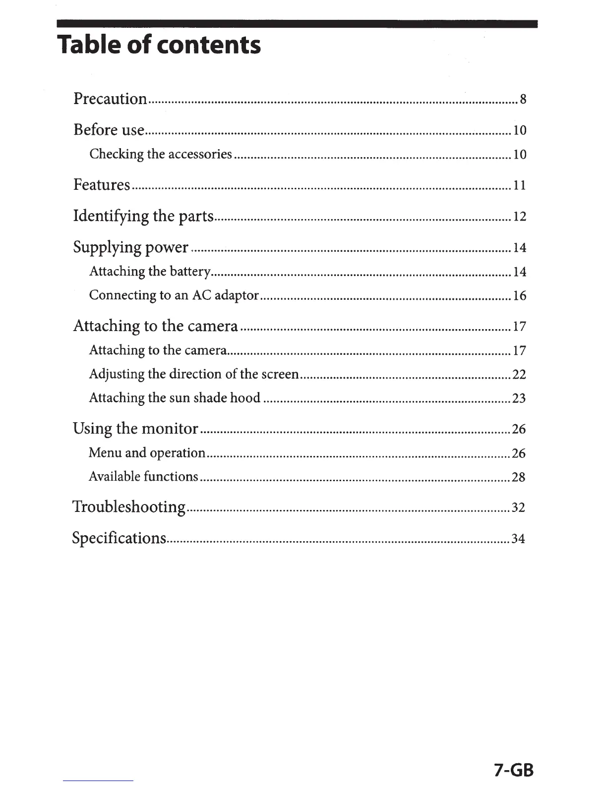 Attaching to the camera ......................................................................................