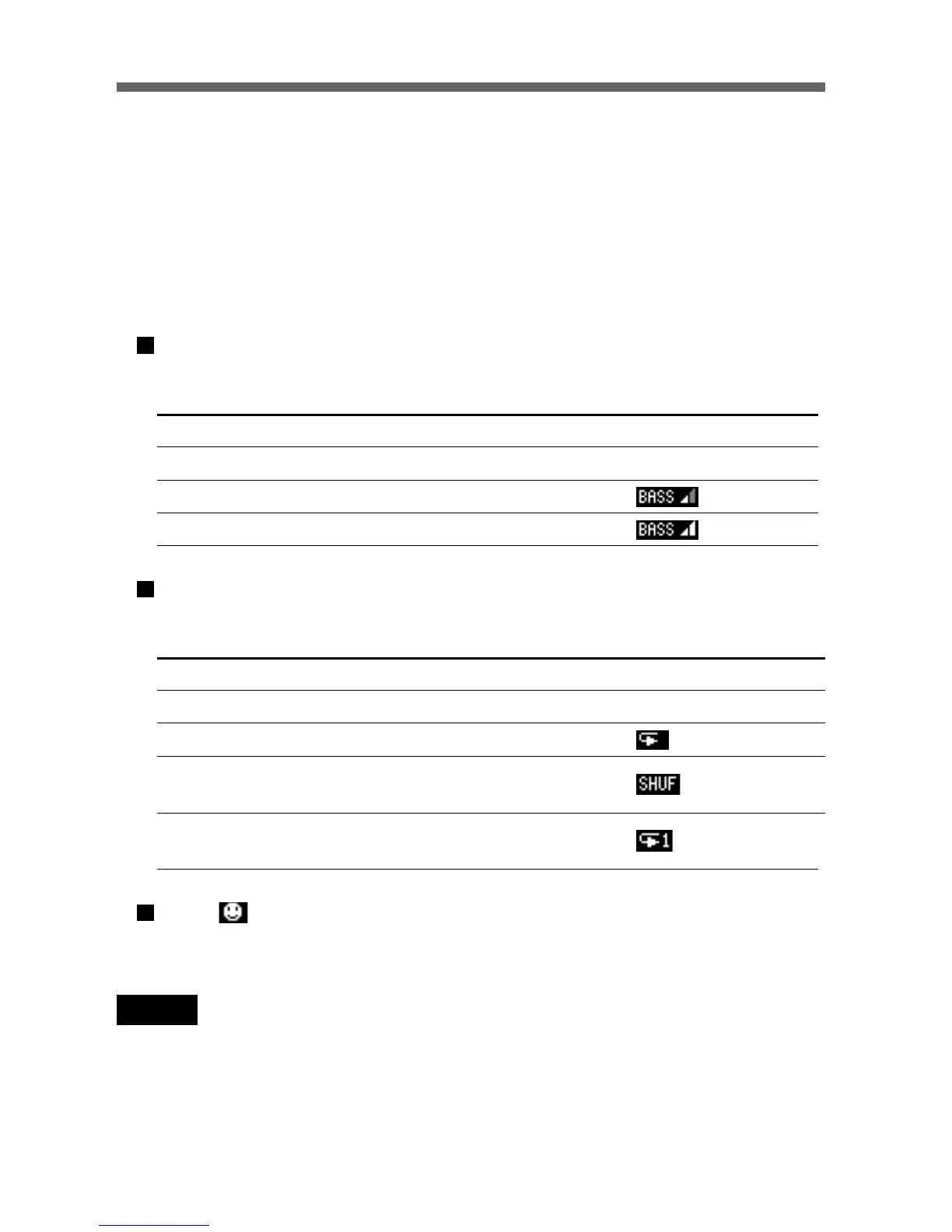the bass sound level (Bass), repeat mode (Repeat) and AVLS (Automatic