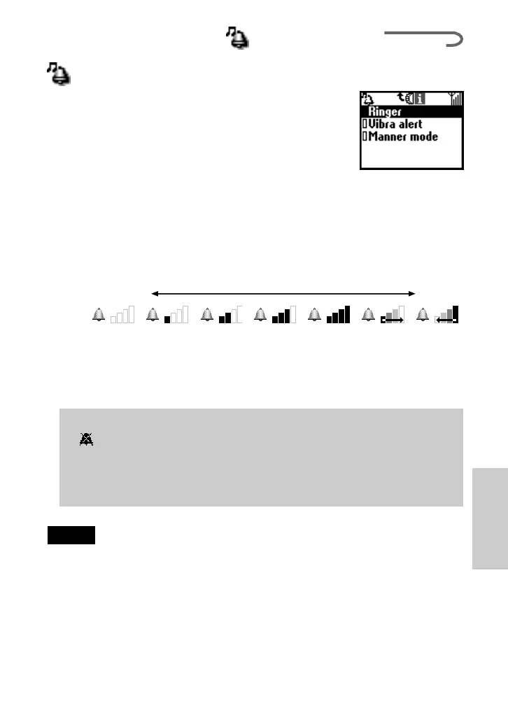 You can select one of the 6 levels of the ringer volume or turn the ringer