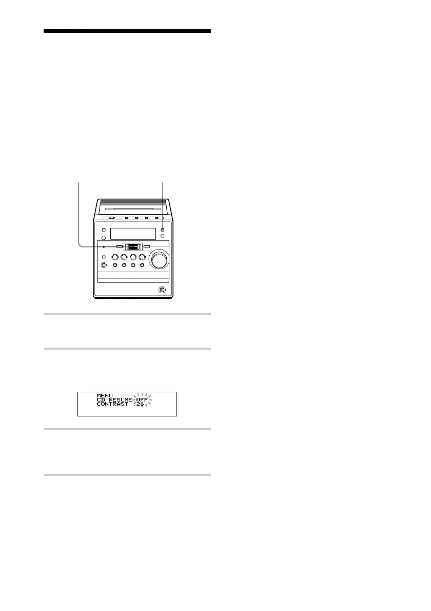 RESUME ON” appears and then press the