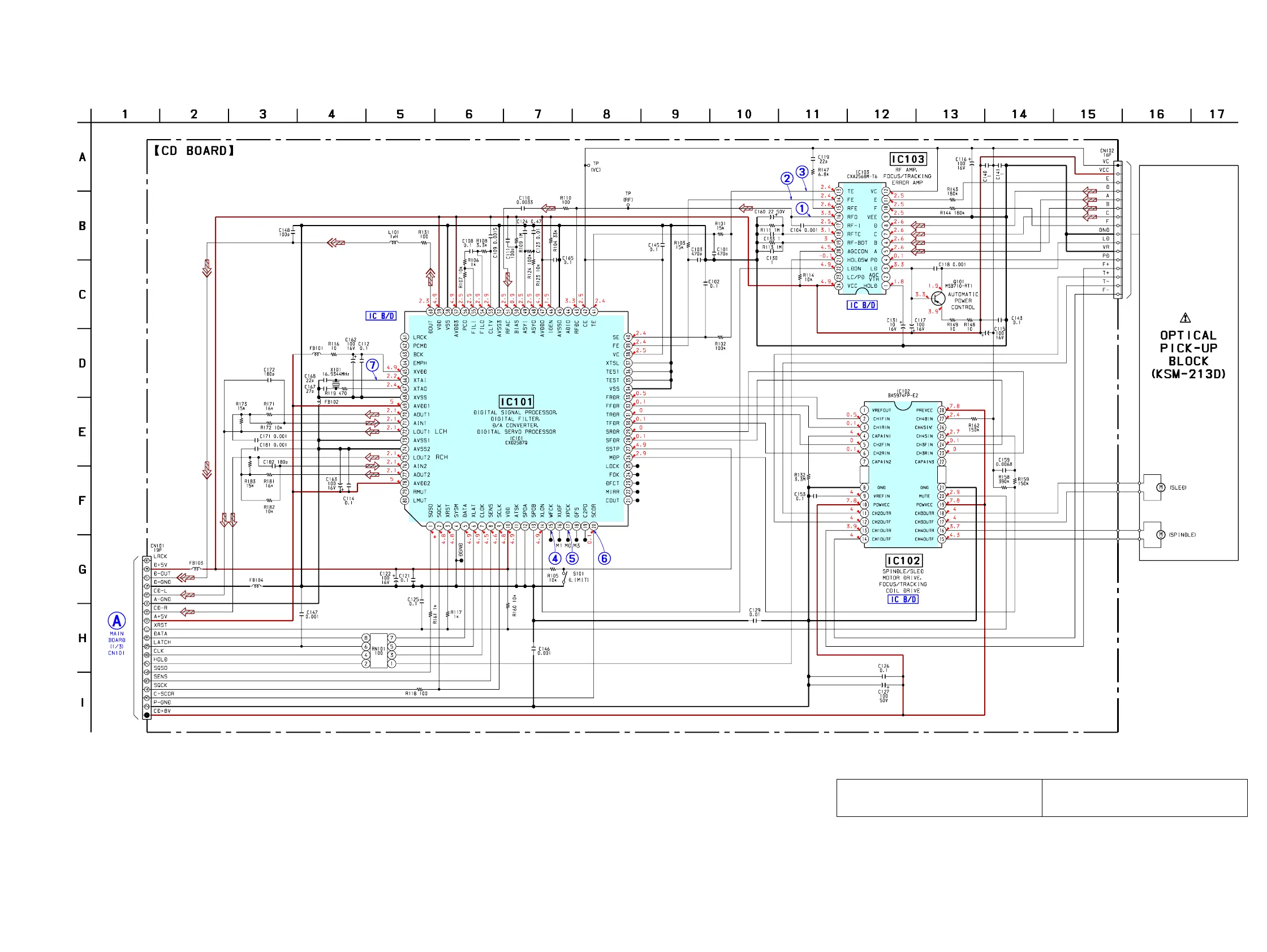 6-6. SCHEMATIC DIAGRAM – CD Board – • See page 19 for Waveforms. • See page 33 for IC Block Diagrams.