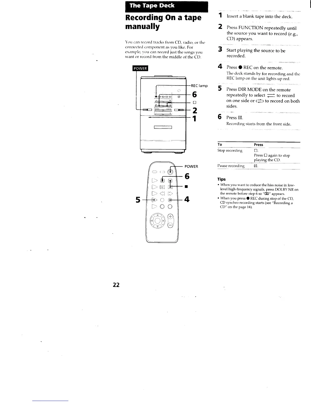 Sony CMT-ED1 - The Tape Deck; Recording Tape Manually