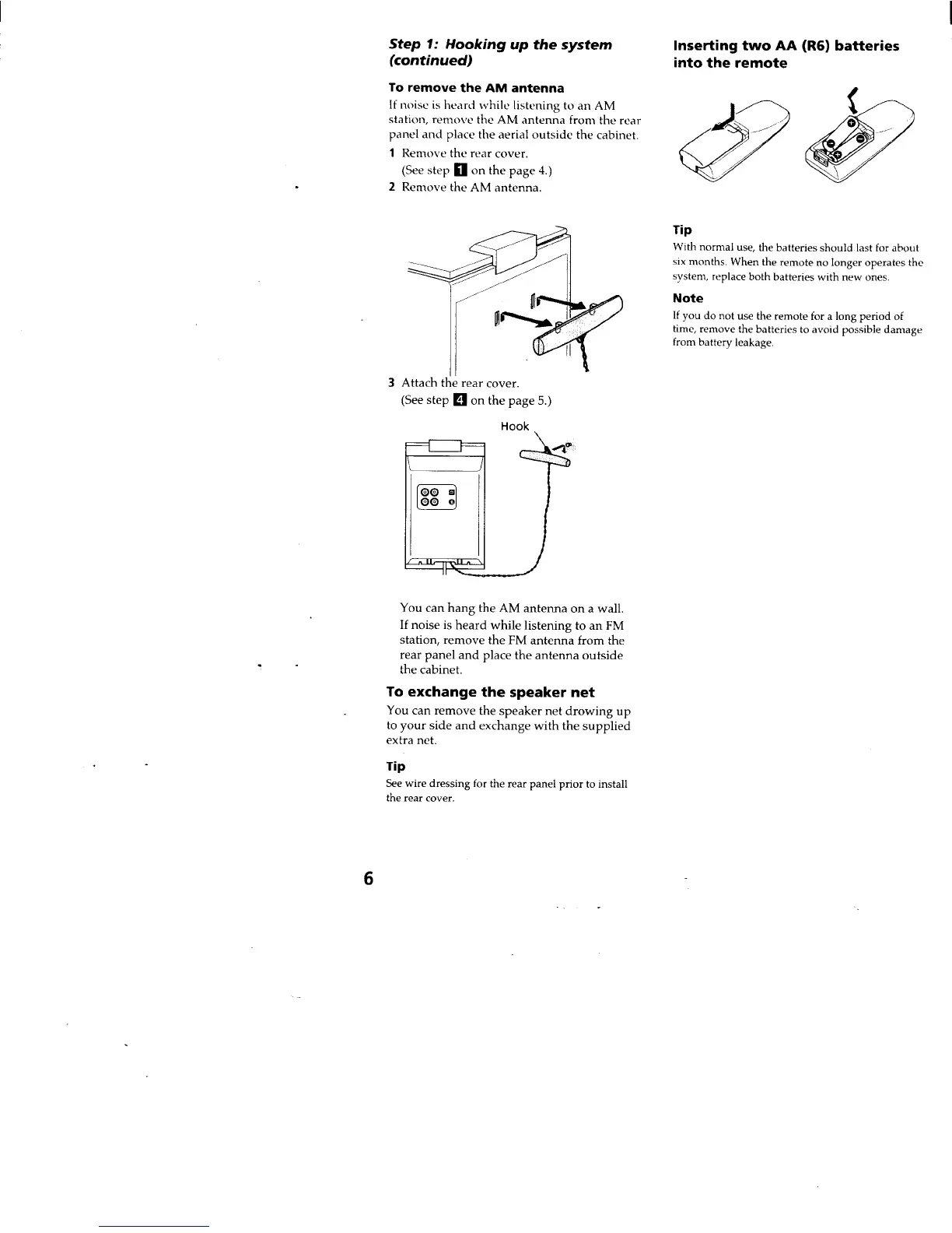 Sony CMT-ED1 - To Remove the am Antenna; To Exchange the Speaker Net; Inserting Two AA Batteries into the Remote