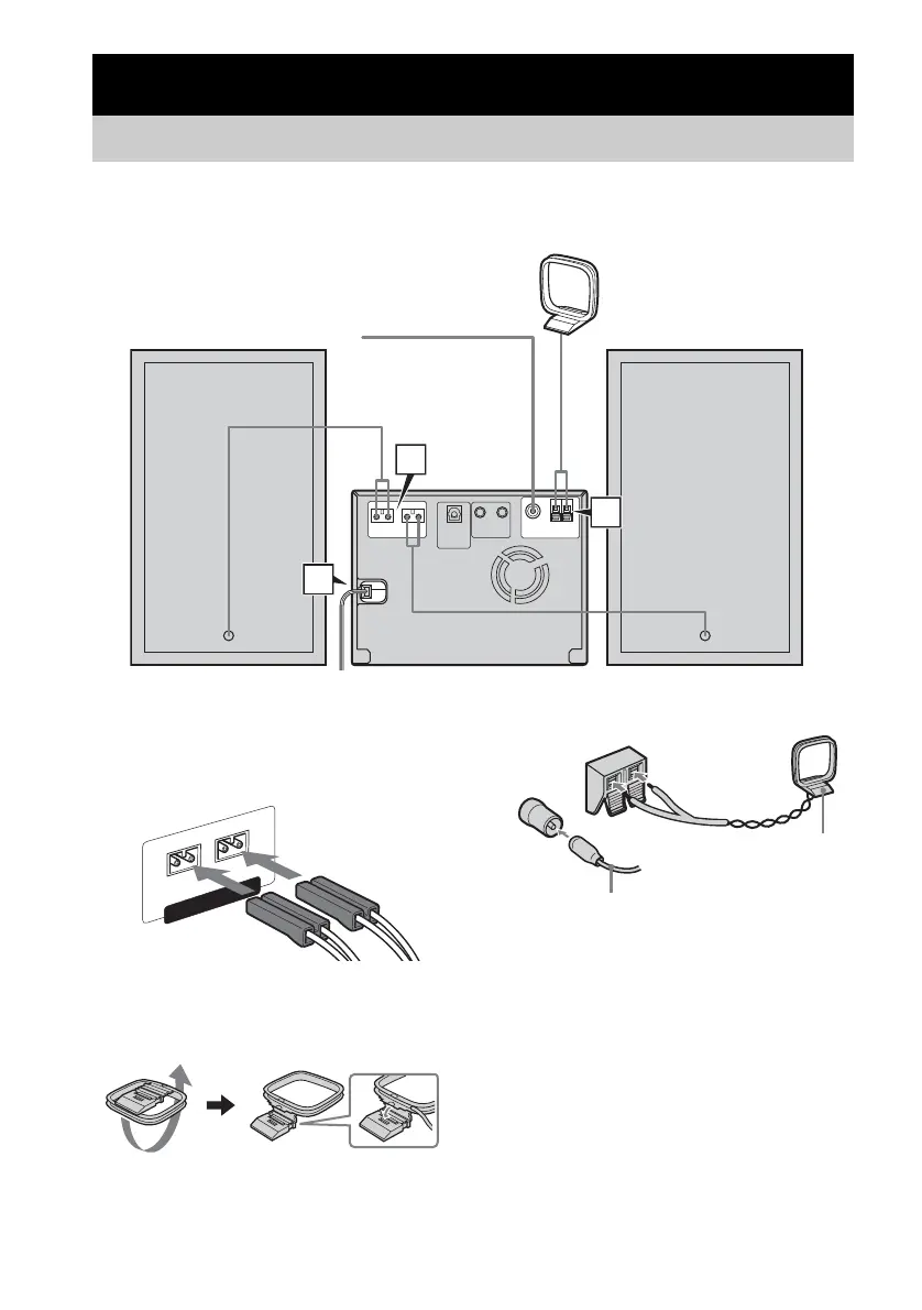 Perform the following procedures 1 to 3 to hook up your system using the supplied cords and