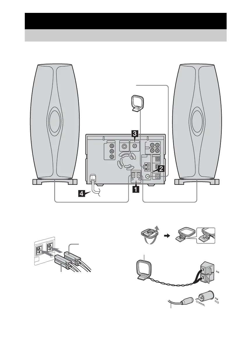 Perform the following procedures 1 to 5 to hook up your system using the supplied cords and