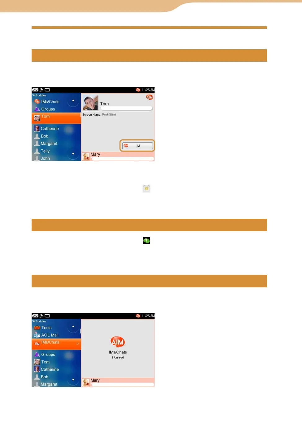 On the Buddies screen, select “IMs/Chats,” and then select the desired IM/Chat