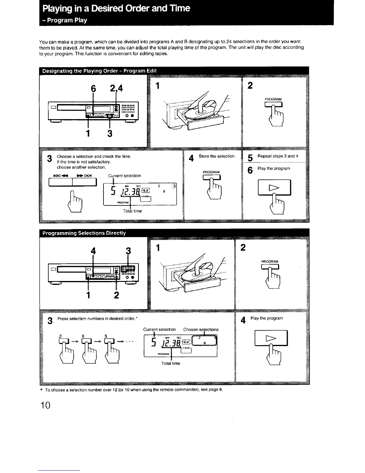 Sony Compact disc player - Program Play Function; Designating Playing Order (Program Edit); Programming Selections Directly