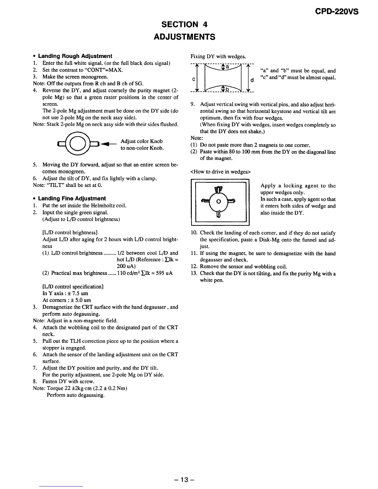 Sony CPD-220VS - Landing Rough Adjustment; Landing Fine Adjustment
