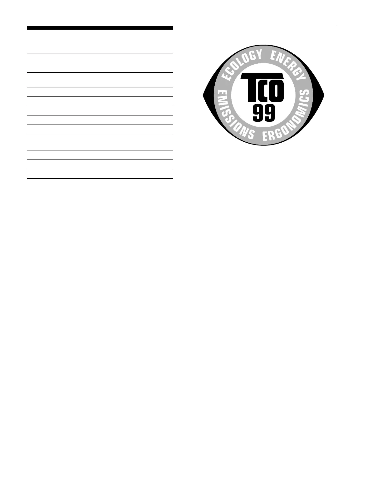 This product meets the requirements for the TCO’99 scheme
