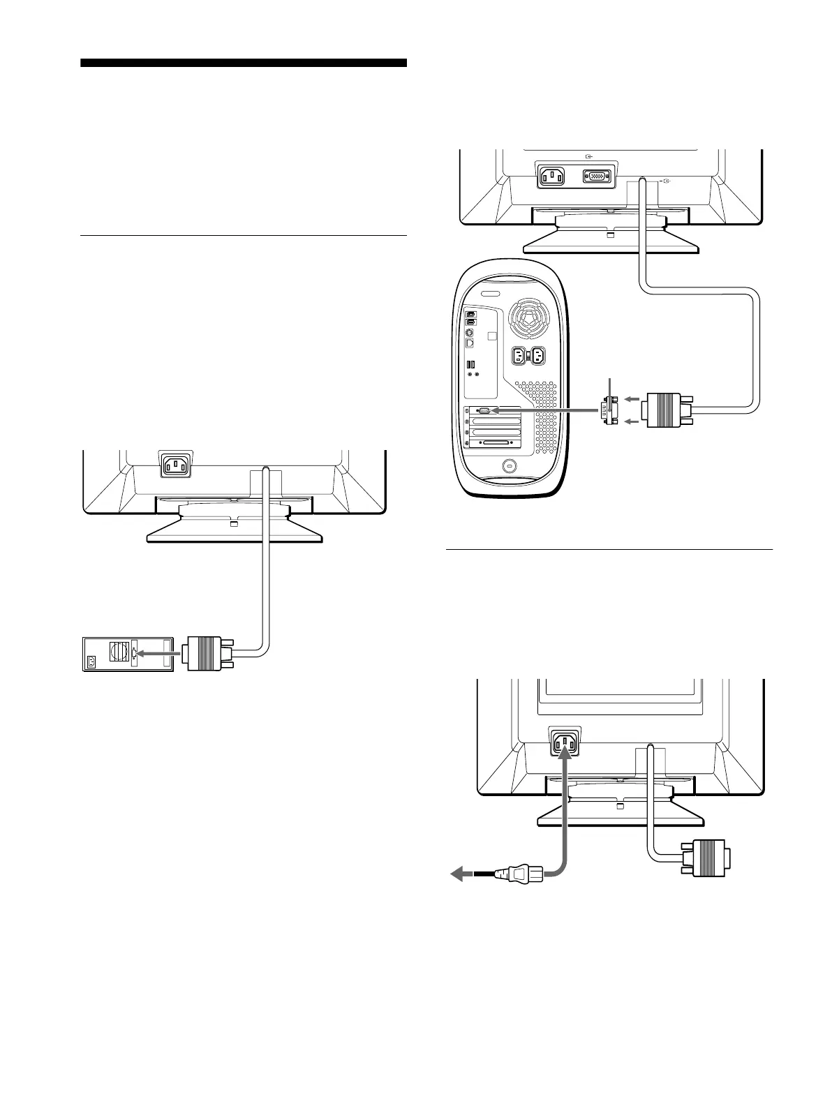 Не включая монитор и компьютер, подключите