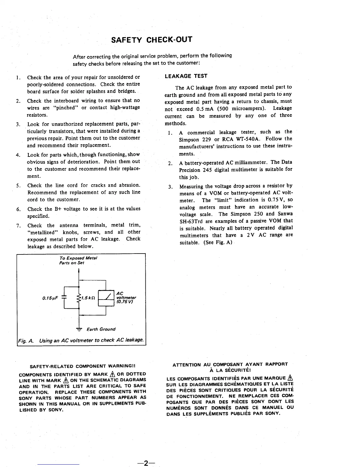 Sony CPJ-200 - Safety Check-Out; Leakage Test
