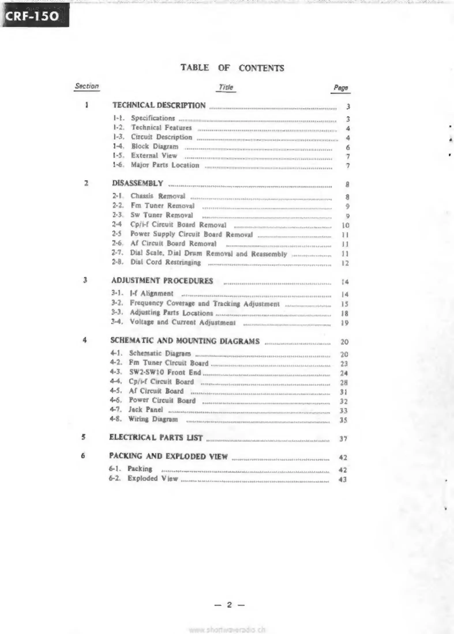 Sony CRF-150 - Table of Contents