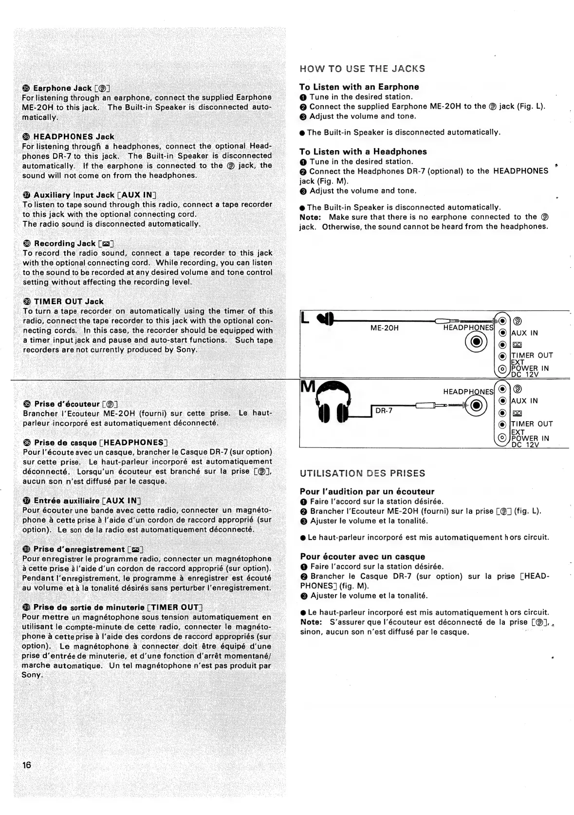Sony CRF-320 - How to Use the Jacks; Utilisation des Prises