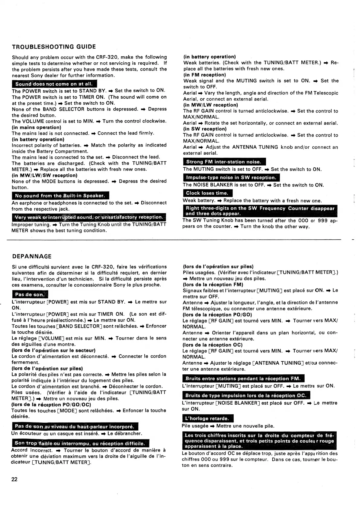 Sony CRF-320 - Troubleshooting Guide; Dépannage