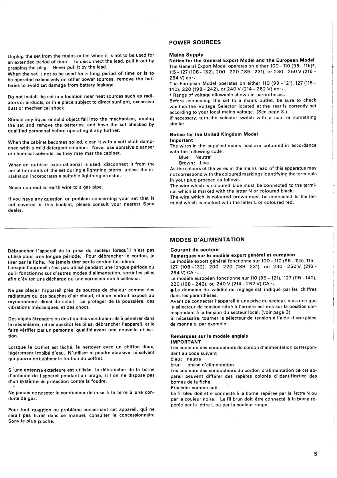Sony CRF-320 - Power Sources; Modes Calimentation; Modes Dalimentation