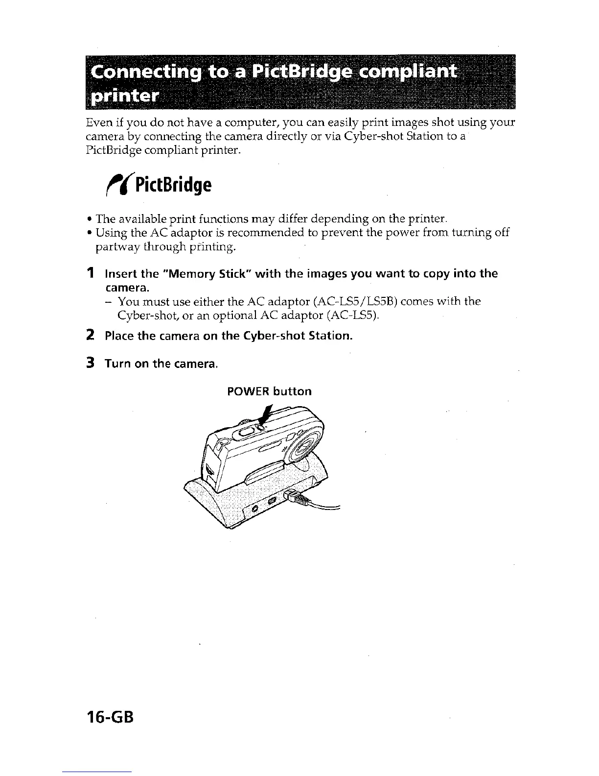 Sony CSS-PHA - Connecting to a PictBridge Printer